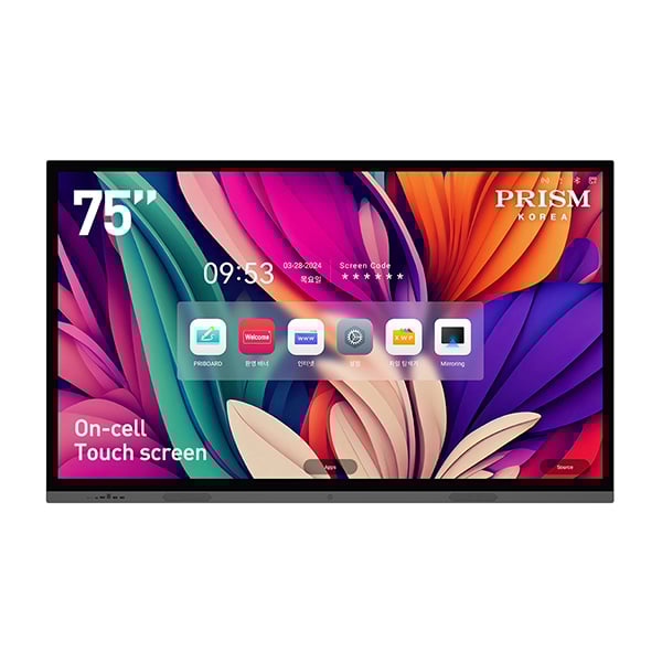 [프리즘코리아] 4K UHD 온셀 스마트 전자칠판 75인치 + 이동형 브라켓 포함
